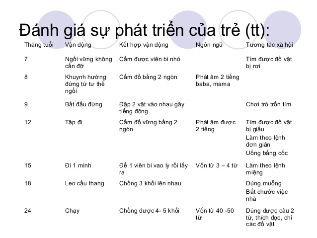 Tóm lại, sự phát triển tâm thần • vận động của trẻ em trong những * năm đầu rất nhanh. Trên đây chỉ nêu lên một số biểu hiện để có thể đánh giá
