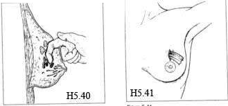 Chẩn đoán phân biệt của viêm vú là ung thư vú thể cấp dạng viêm. Bệnh nhân có biểu hiện vú sưng to ,vùng da phía trên ổ áp xe thường nóng ,căng ,xung huyết đỏ hoặc phù tím .Da cũng có thể vẫn bình thường nếu ổ áp xe nằm ở sâu . Các tĩnh mạch dưới da nổi rõ, núm vú tụt .Sờ có thể thấy dấu hiệu ba động .Nếu ổ áp xe thông với các ống dẫn sữa thì có thể thấy sữa lẫn mủ chảy qua đầu núm vú. Khi chọc hút ổ áp-xe phải gây mê phù hợp; ketamine, gây mê vùng rộng hoặc gây mê toàn thân. Khử trùng da và đắp drap. Thực hiện một nét rạch xuyên tâm ở phần nổi nhất của ổ áp-xe (Hình 5.38)