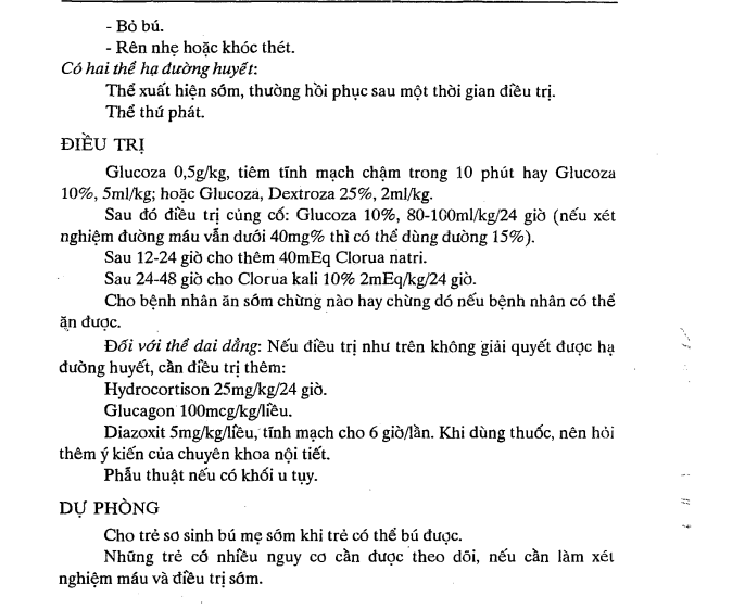 Hạ đường huyết thường xảy ra ở trẻ sơ sinh bệnh lí, được chẩn đoán xác định bởi đường máu giảm (dưới 40mg/dl ở trẻ đủ tháng, dưới 20mg/dl ở trẻ đẻ non), kèm theo các dấu hiệu lâm sàng của hạ đường huyết và mất đi sau khi được điều trị bằng Glucoza.